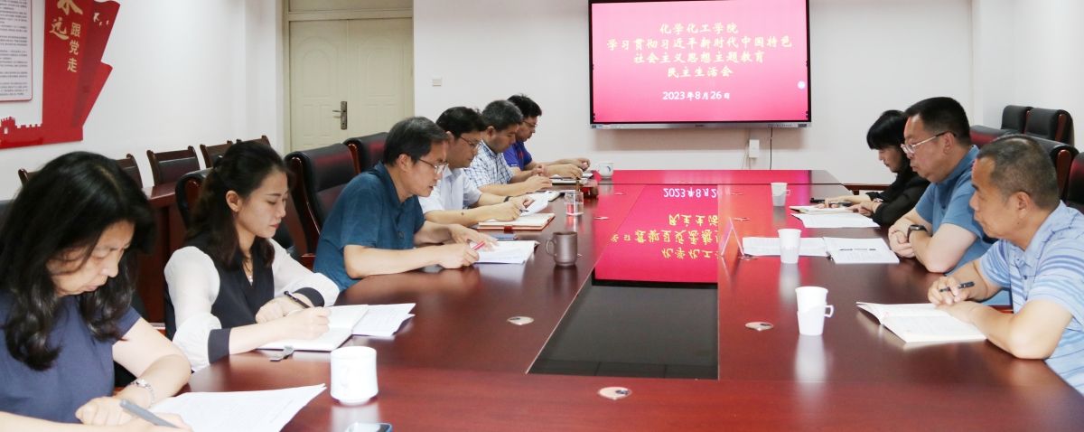 根据学校组织部、纪委统一部署,8月26日下午,化学化工学院党委召开深入学习贯彻习近平新时代中国特色社会主义思想主题教育专题民主生活会。校长刘宗明到会指导,化学化工学院全体班子成员参加会议。